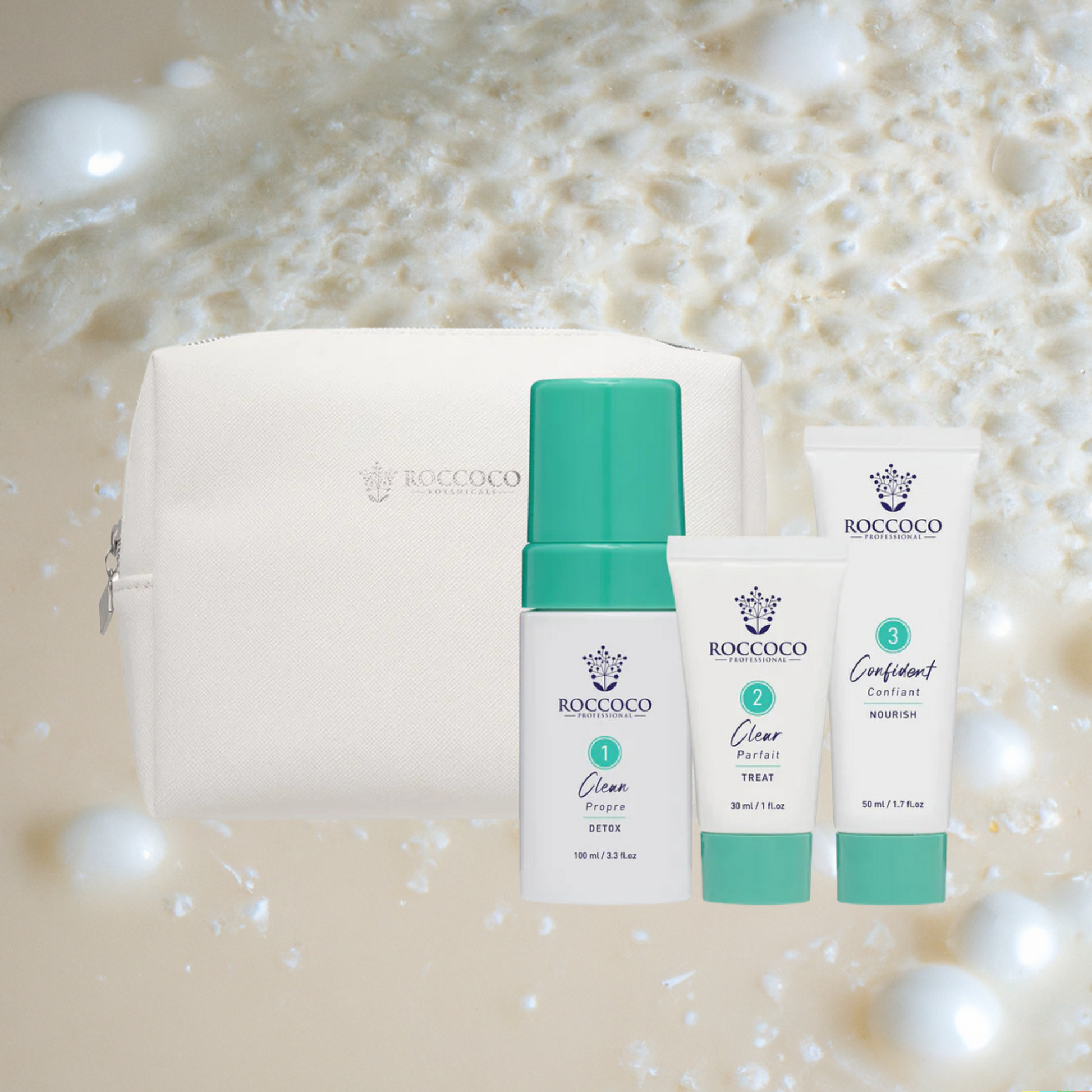 Roccoco Clean, Clear, Confident is an easy-to-follow 3-step routine designed specifically with teenage skin concerns in mind. Active botanicals and vitamins help unclog pores, mattify, and reduce inflammation, while hydrating and nourishing the skin so it's glowing with confidence.
