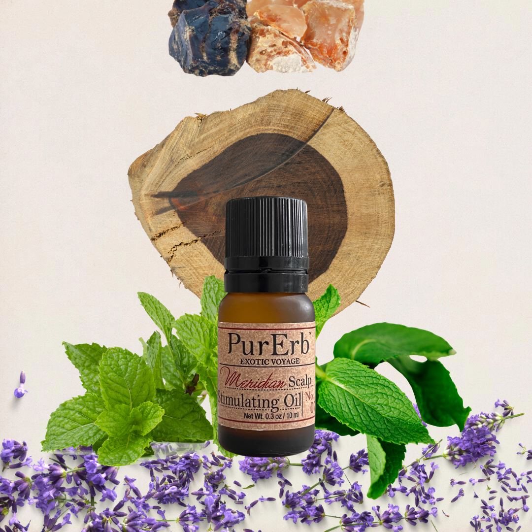 Opulent fusion of over a dozen revitalizing oils featuring peppermint, spearmint, lavender, frankincense, and rosewood to instantly ease stress and relieve tension in the scalp, forehead and neck.