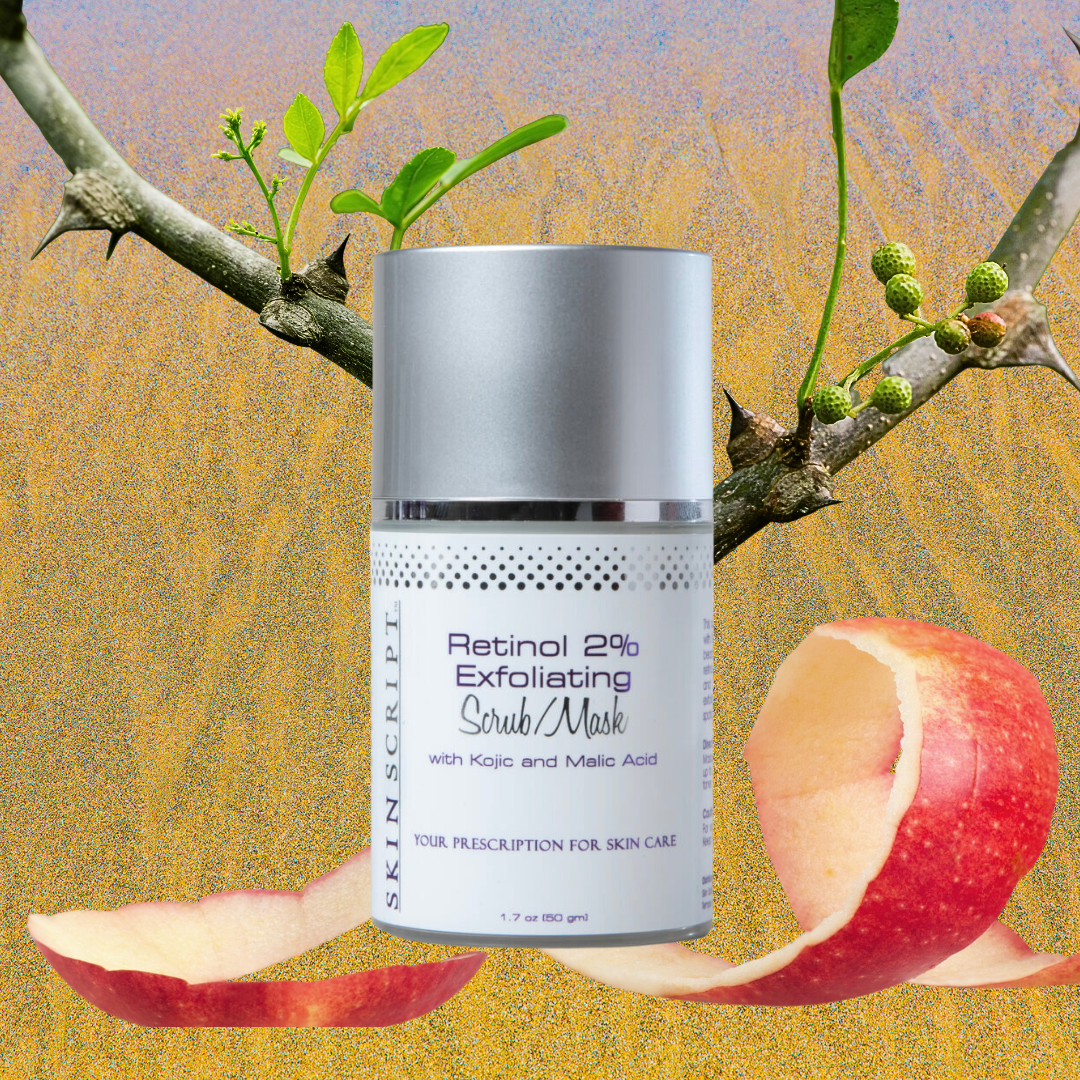 Retinol 2% Exfoliating Scrub/Mask features top-notch ingredients to effortlessly bust signs of aging. Retinol promotes desquamation which keeps your skin cell renewal cycle going strong. Kojic acid reduces discoloration and helps maintain a more even skin tone. Jojoba beads provide physical exfoliation to brighten and smooth.